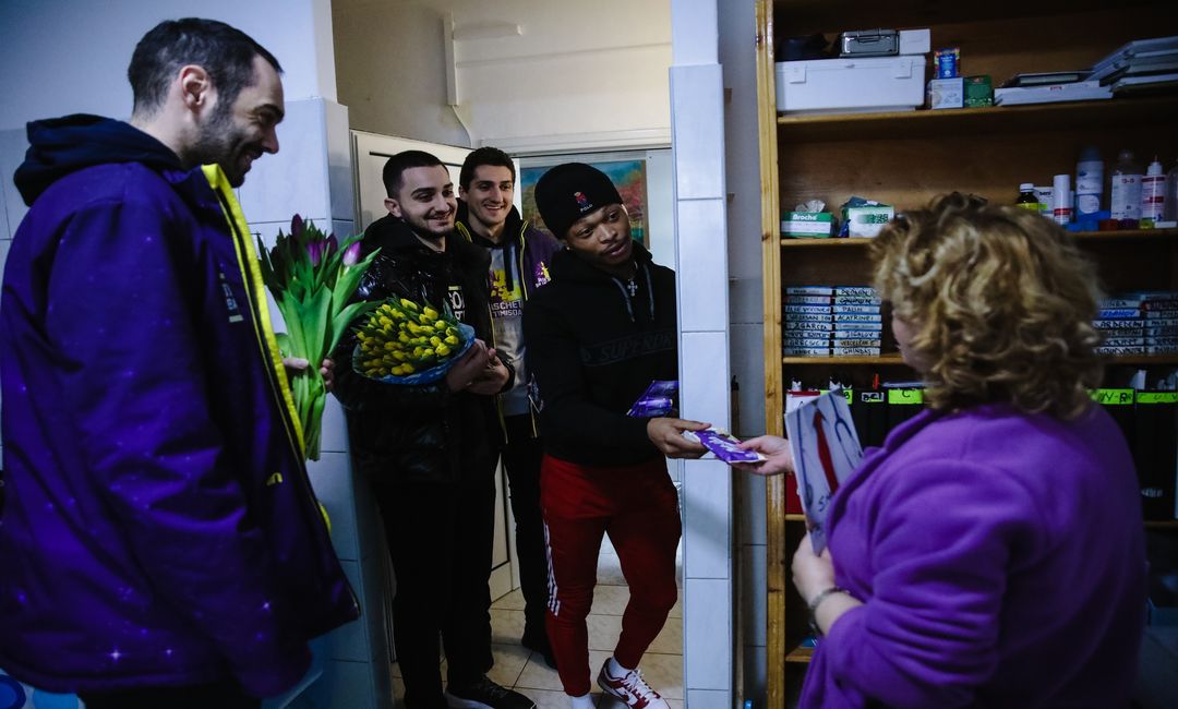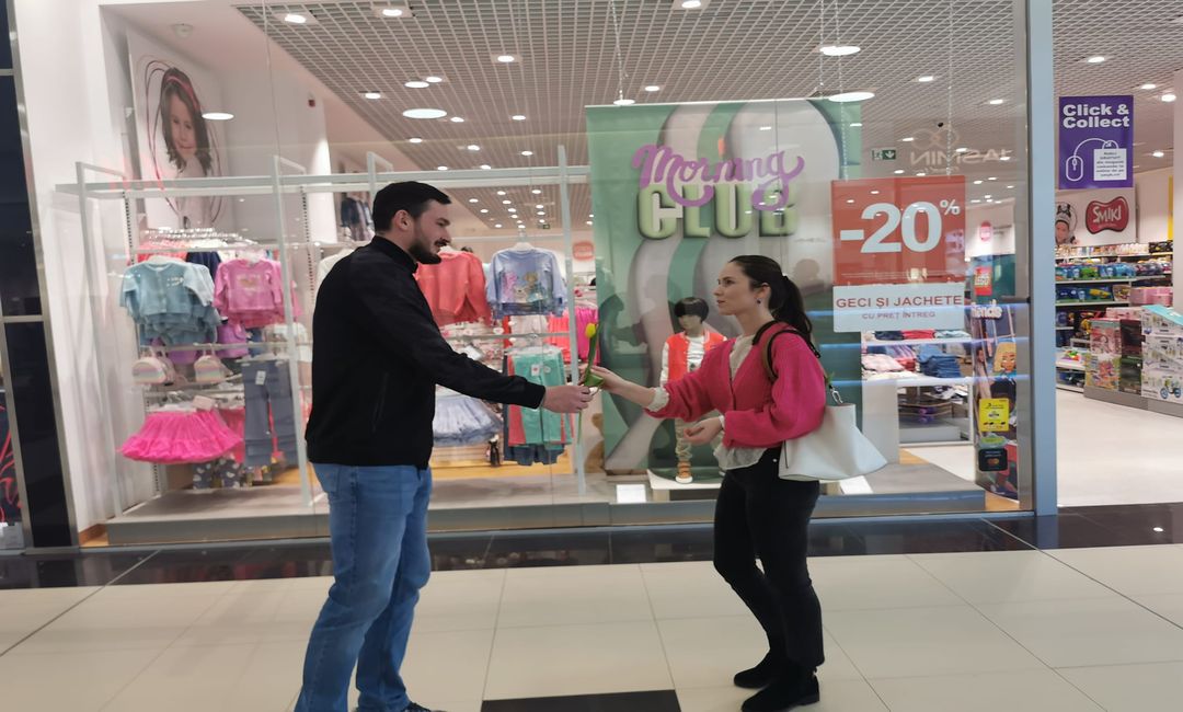 Handbalistii, in frunte cu antrenorul Mihai Rohozeneanu, au fost intr-un celebru magazin din zona Sagului, unde nu au lasat nicio doamna sau domnisoara fara lalele violete si ganduri bune.