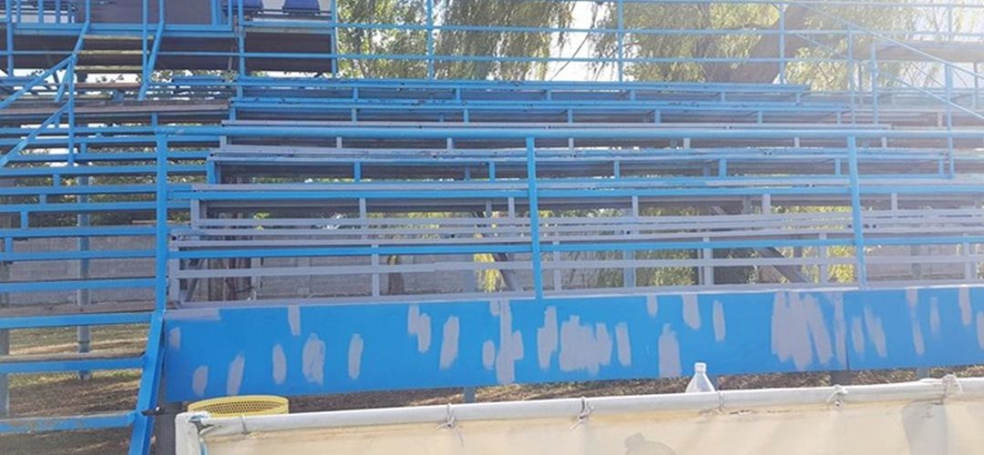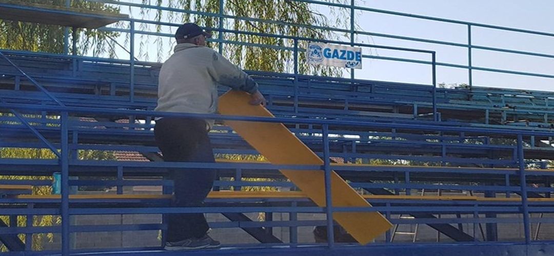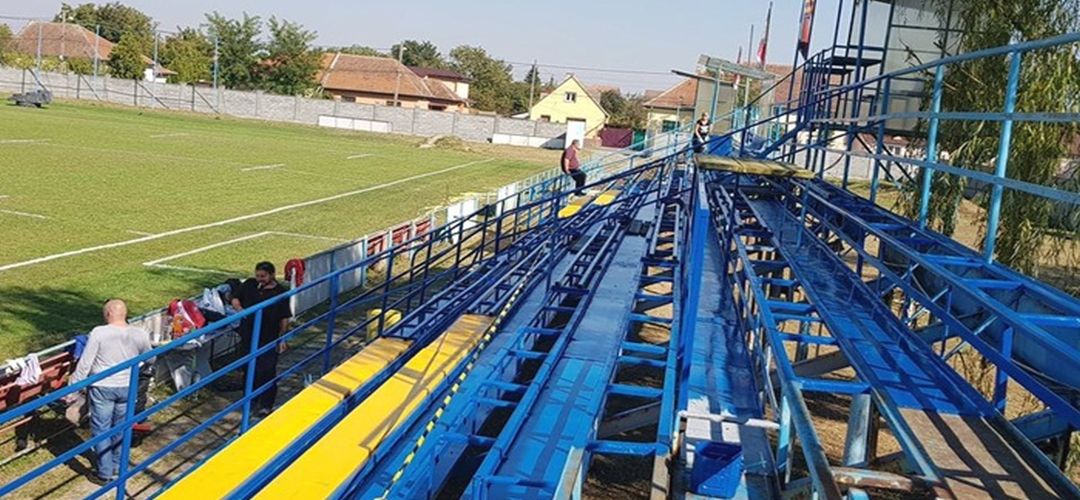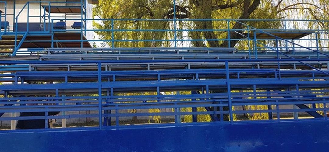 Fanii au demontat vechile scaune din plastic, au revopsit in galben si albastru tribuna metalica, au pus bancute de lemn, dar au refacut si cabinele existente in partea superioara a tribunei. In ajutorul suporterilor a venit si compania Constructim care a renovat toaletele si tribuna, iar de atunci asigura intretinerea terenului.