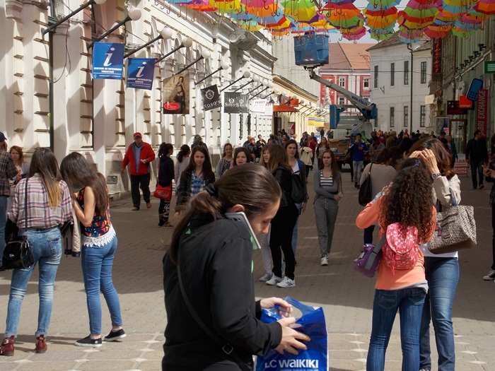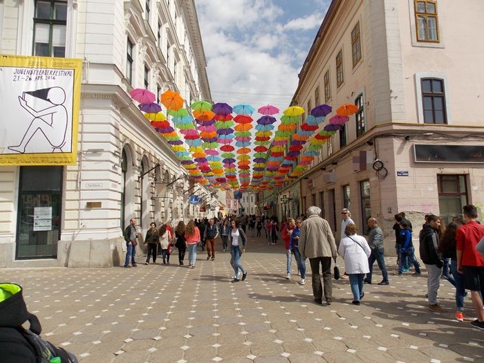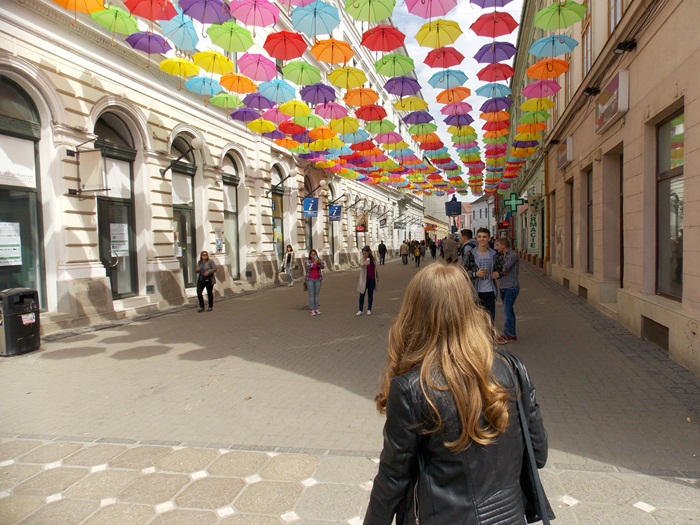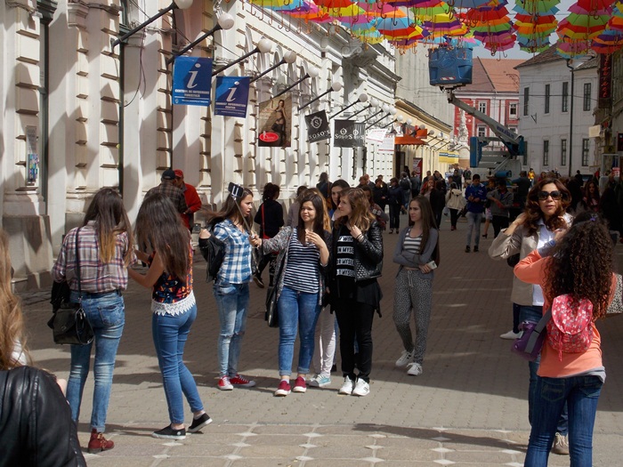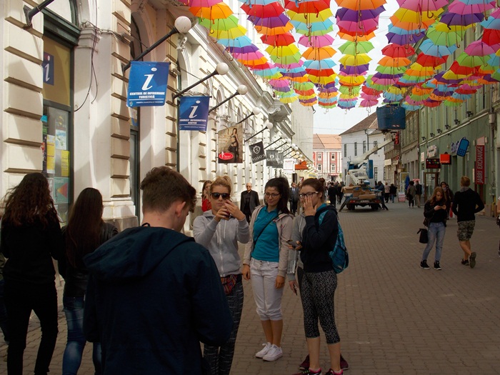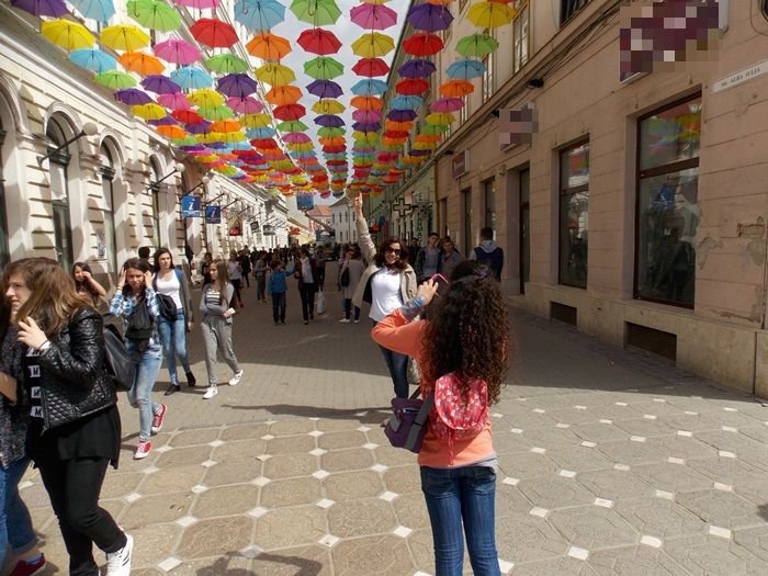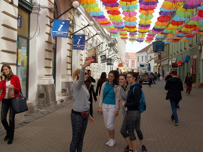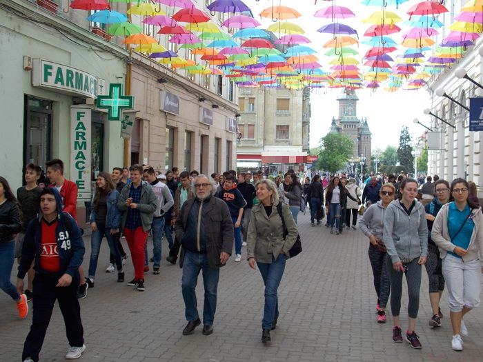 Timisoara s-a transformat in aceste zile intr-un oras… turistic. Elevii de toate varstele misuna prin centrul orasului, iar agatarea umbrelelor pe strada Alba Iulia e un prilej perfect de a pune niste fotografii proaspete pe retelele de socializare.