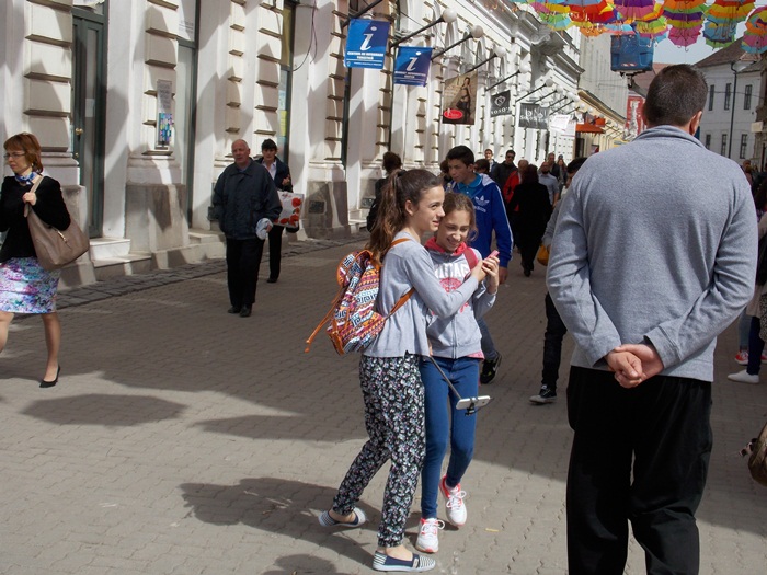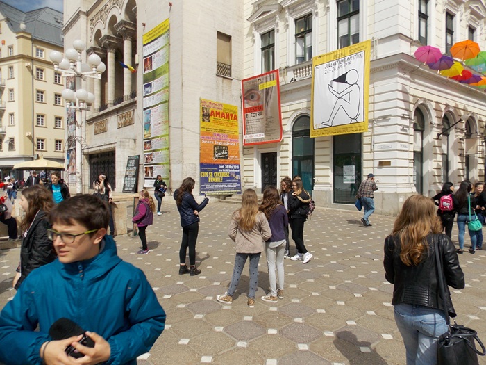 TIMISOARA. Aparitia umbrelelor pe strada Alba Iulia coincide cu saptamana “Scoala Altfel”, iar elevii de la scolile din oras nu au ratat ocazia primelor selfie-uri.