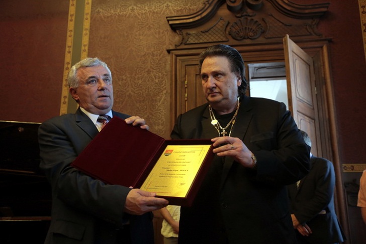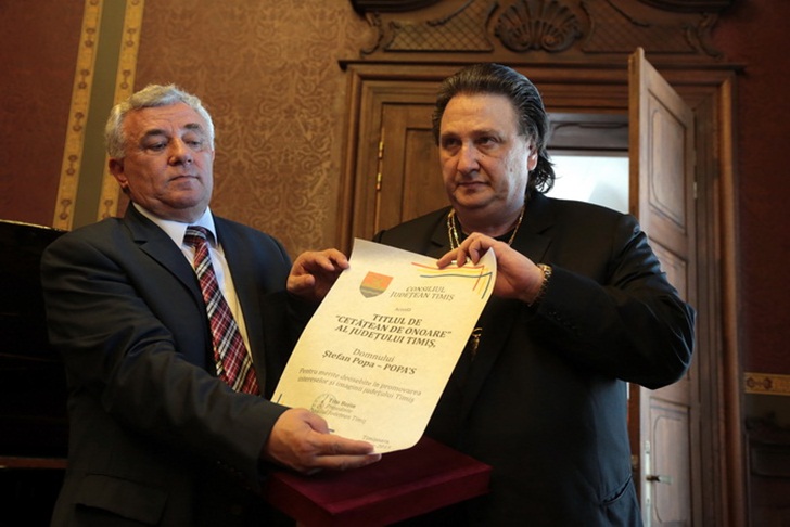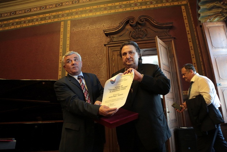 ”Este o adevarata onoare sa-i pot inmana titlul de cetatean de onoare”, a spus Bojin care i-a mai inmanat lui Stefan Popa Popa’s si o sticla de sampanie.