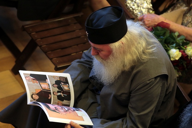”Vad ca i-ati adus foarte multe flori, eu insa i-am adus o floare pe care am cules-o din Biblie, rugaciunea Tatăl nostru. Doamne Dumnezeule intareste inima acestui mare roman. Mana v-a fost binecuvantata de Dumnezeu, dumneavostra desenati mai repede decat vorbiti. Dumnezeu sa il ajute in aceasta viata sa fure cat mai multe zambete oamenilor si sa picteze chipuri de ingeri in Rai”, a spus mitropolitul.
