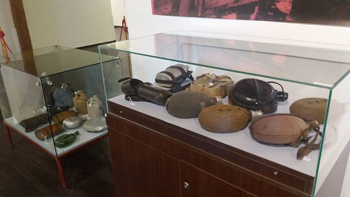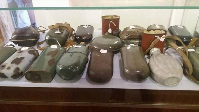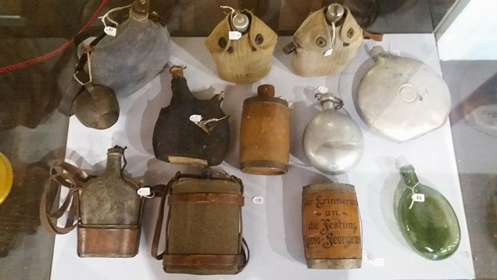 Colectia reuneste elemente folosite in mare parte pentru stocarea apei, ce au fost utilizate de catre militari. Expozitia este impartita pe tipologii, spatii impresionante fiind rezervate obiectelor apartinand armatelor italiene, austro-ungare si germane. De asemenea, vizitatorii vor putea admira si recipiente utilizate de aliatii celor doua mari tabere beligerante, Antanta si Puterile Centrale. Sunt expuse sticle pentru bere, lichioruri si ape minerale, dar si sticlute medicinale, calimari si diverse paharele.
