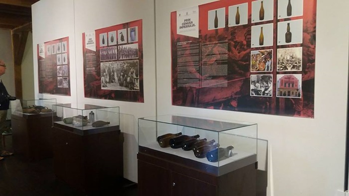 O sticla de bere fabricata in Timisoara la inceputul secolului trecut, dar si alte sute de obiecte recuperate din transeele sapate de soldati, in timpul Primului Razboi Mondial, sunt expuse in mansarda Bastionului Theresia din Timisoara.