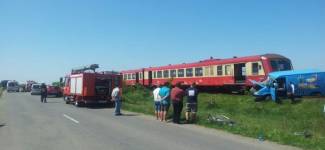 Accident de tren aproape de Timisoara. Sofer aruncat dintr-un microbuz! FOTO!