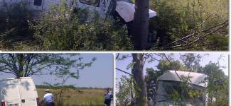 Accident la iesirea din Timisoara spre Sacalaz: 2 oameni raniti, dupa ce un microbuz s-a izbit violent de un copac