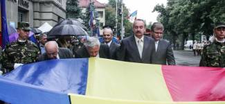 Drapelul Romaniei a fost sarbatorit la Timisoara cu o defilare prin ploaie in fata Palatului Administrativ. FOTO!
