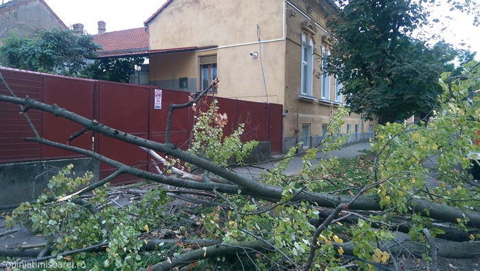 TIMISOARA. Cat pe ce sa se produca o tragedie, duminica dupa-amiaza, in cartierul Elisabetin din Timisoara! Un sofer a tras o sperietura strasnica, trecand milimetric pe langa o nenorocire. A fost aproape sa se trezeasca cu un copac pe masina, care s-a prabusit pe carosabil, pe strada Virgil Madgearu, aproape de intersectia cu strada Gheorghe Doja.