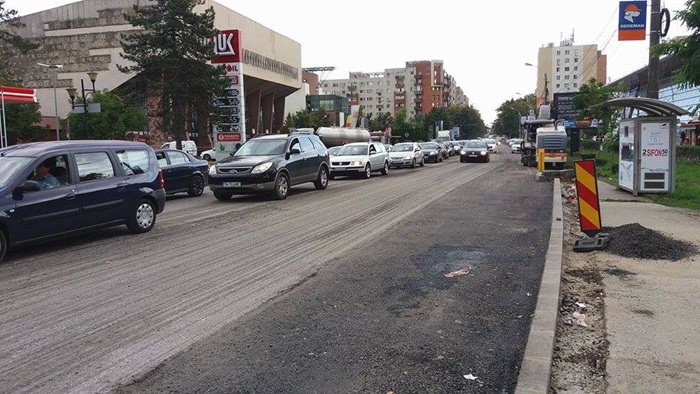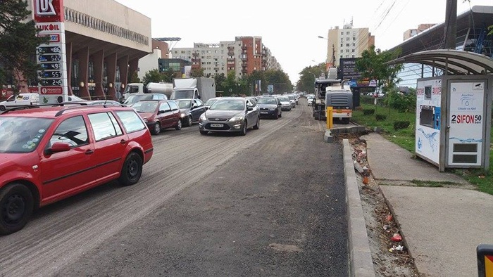 Zona de asfalt dintre liniile de tramvai si Bulevardul Eroilor a fost decopertata si urmeaza sa fie reasfaltata, in timp ce in zona de langa caminul studentesc 16, pe sensul de circulatie dinspre Abator catre strada Cluj, a fost creata o banda speciala pentru cei care vor sa faca dreapta spre podul Michelangelo.