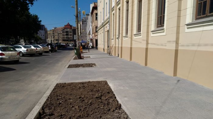 Trotuarul din fata Colegiului Bratianu a fost reamenajat, reprezentantii municipalitatii anuntand ca in aceasta toamna vor fi plantati si copaci acolo.