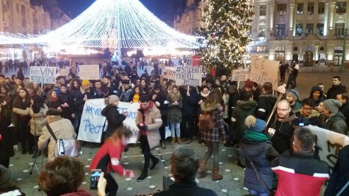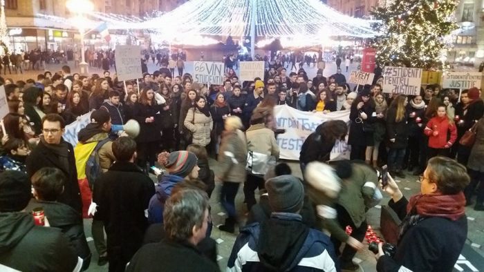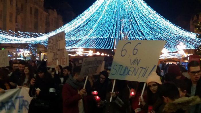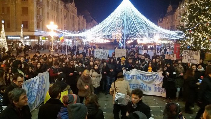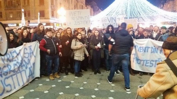 “Leagea-i lege pentru toti/Nu-i facuta pentru hoti”, “Visul meu din studentie/O tara fara hotie”, “Am venit din toata tara/Protestam la Timisoara”, sunt doar cateva dintre lozincile strigate de tineri.