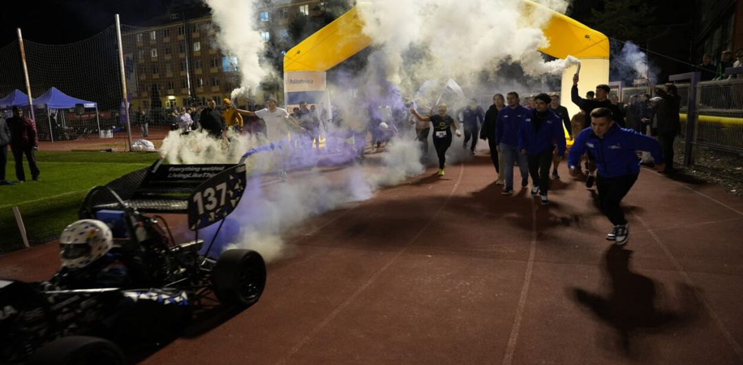 Finalul a fost cu adevărat incandescent, alături de alergători venind și mașinile de Formula Student ale UPT Racing Team, cu fumigene în culorile alb-violet, specifice Politehnicii, dar și trupa de majorete Mini Mini Reflex a echipei de handbal SCM.