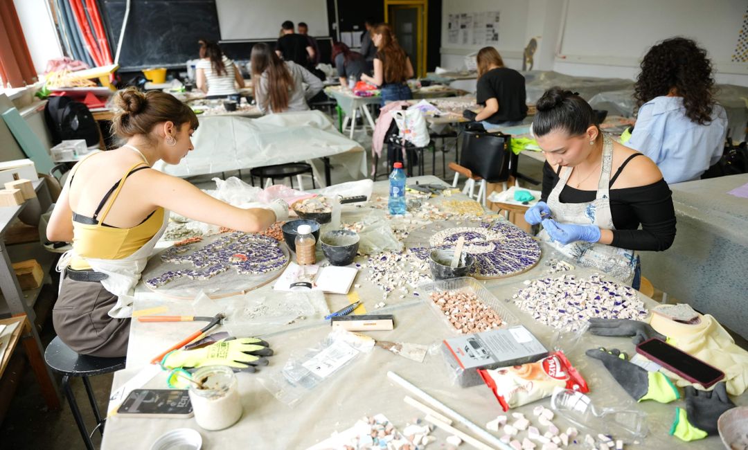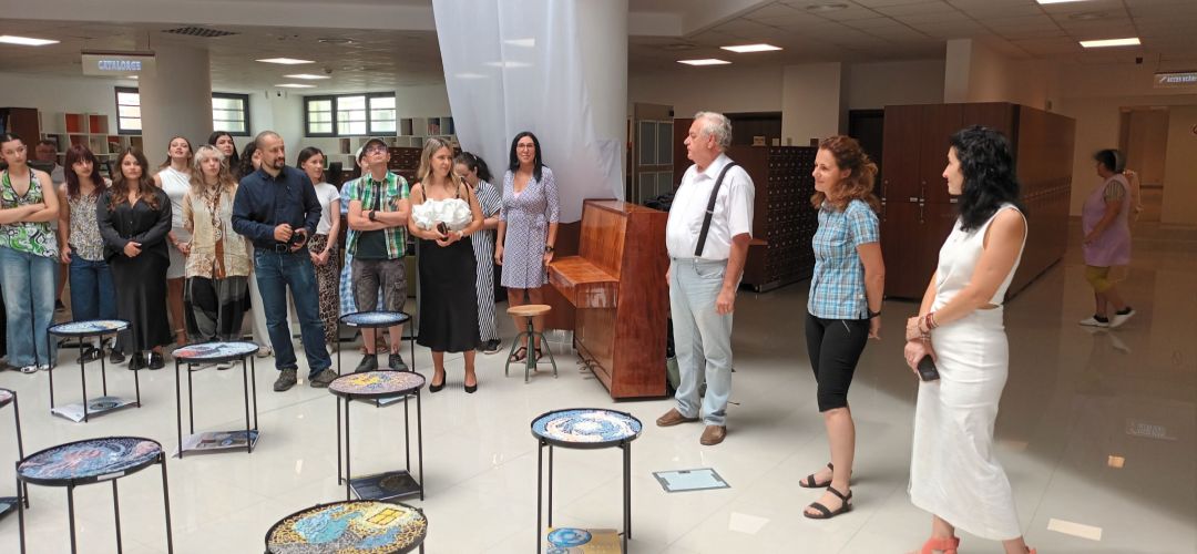 TIMISOARA. După două săptămâni de muncă asiduă, în care au lucrat și în weekend-uri, studenții Facultății de Arhitectură și Urbanism din cadrul Universității Politehnica Timișoara, specializarea Mobilier și Amenajări Interioare, au finalizat și expus lucrările realizate în cadrul „Competiției culorilor Mapei”. La ediția din anul 2025, tema concursului a constat în personalizarea prin tehnica mozaicului a unei măsuțe de serie mare, cu diametrul de 45 cm, pusă la dispozitie de organizatori. Vernisajul expoziției cu lucrările realizate a avut loc miercuri, 16 iulie 2025, în holul central al Bibliotecii UPT.