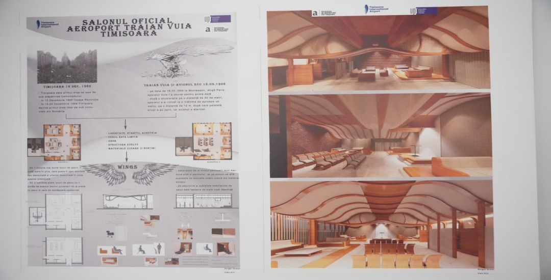 Încă din semestrul I al anului 6, aceștia au avut de realizat, în cadrul proiectului de la disciplina „Amenajări de interior”, propuneri de amenajare a salonului oficial al Aeroportului „Traian Vuia” din Timișoara.