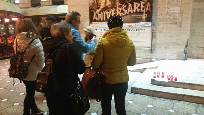 TIMISOARA. In urma unui apel lansat pe Facebook, cativa timisoreni au venit duminica seara in Piata Victoriei sa aprinda o lumanare in memoria celor 65 de tineri care au murit nevinovati in dezastrul de la #Colectiv, in urma cu doi ani.