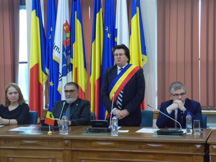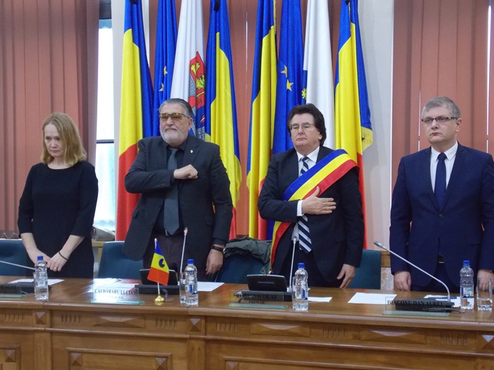 Sedinta a inceput cu intonarea imnului national, dupa care s-au tinut momente de reculegere in memoria Regelui Mihai I al Romaniei si a eroilor rapusi de gloante in Decembrie 1989. Primarul Nicolae Robu a fost primul care a luat cuvantul pentru a le transmite celor prezenti gandurile sale.