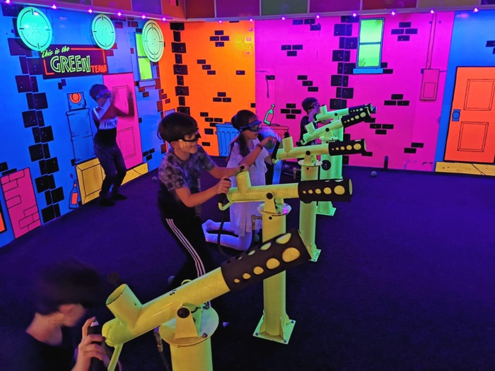 “Iubim copiii si suntem foarte primitori cu ei. Si noi avem copii si stim ce inseamna asta. Parintii sunt foarte linistiti pe timpul petrecerii, iar in noua extensie dedicata lor, piticii se pot distra pe masura. Vrem ca parintii sa se simta bine in zona de sus, iar micutii sa se poata juca in voie in locul de joaca din restaurant… La petrecerile pe care le-am organizat deja, am fost placut surprinsi sa vedem ca spiritul de competitie il depaseste cu mult pe cel razboinic si copiii efectiv isi doresc foarte tare sa aiba punctajul cel mai mare. Exista si un ecran pe care copilasii pot vedea si urmari punctajul si, atunci, obiectivul lor este acela de a nimeri tintele si in niciun caz de a incerca sa isi loveasca adversarul cu bilele de burete, care sunt oricum foarte moi si usoare“, a explicat Oana Popoviciu, manager la Paradisul Piratilor.
