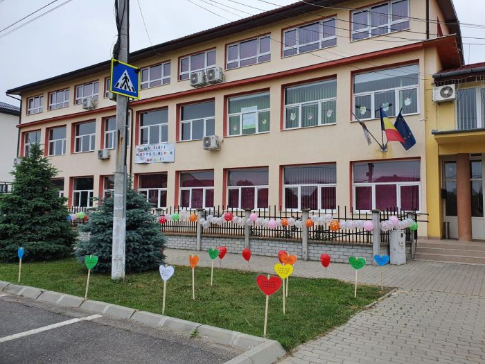 Scolile au fost impodobite cu ghirlande de baloane colorate legate de garduri, iar pe spatiul verde din fata unitatior de invatamant au fost ‘sadite’ inimi purtatoare de mesaje prin care ii indeamna sa se bucure de copilarie.