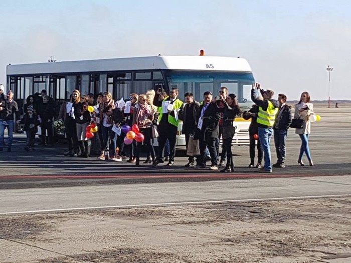 Aeronava care il avea la mansa pe pilotul Pastzi Tibor a sosit, la Timisoara, de la Bergamo si a fost intampinata de o bolta de apa. Doua autospeciale s-au pozitionat de-a dreapta si stanga pistei si au lansat jeturi de apa peste avionul care rula catre platforma.