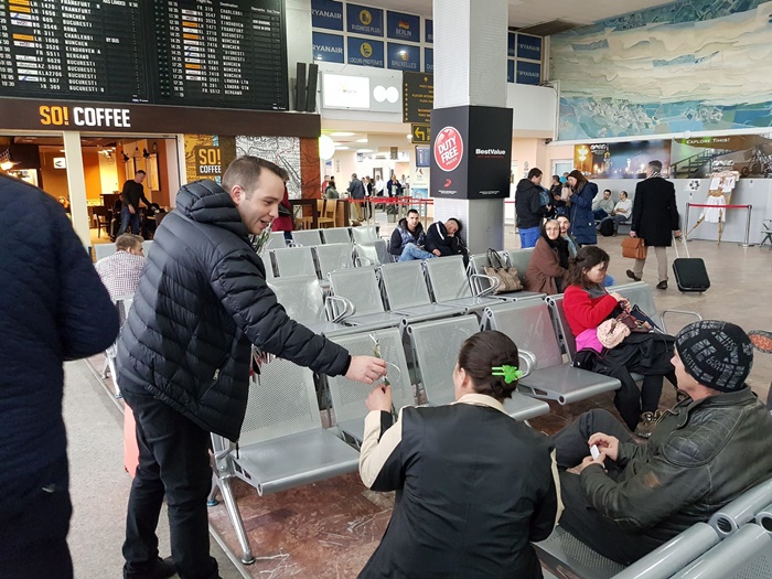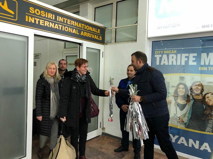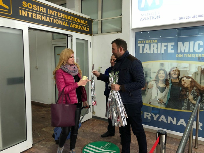 TIMISOARA. In 8 martie, de Ziua Internationala a Femeii, angajatii Aeroportului International Timisoara au dorit sa aduca un zambet pe chipul pasagerelor care astazi s-au aflat la aeroport.