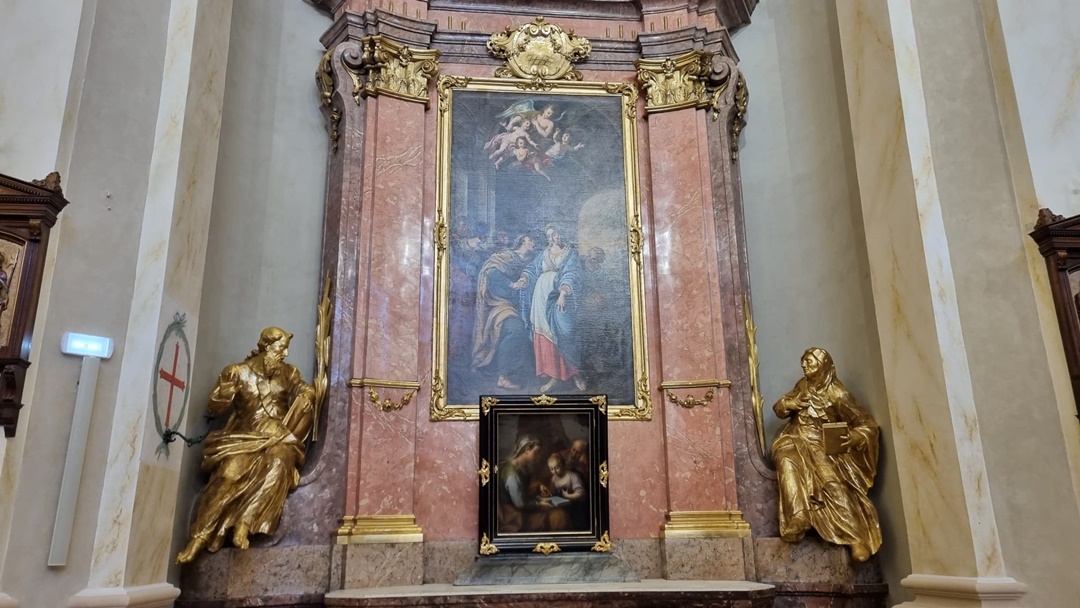”La 1754 aici s-a ridicat un zid mare de scandura si au inceput slujbele. Ca la gotici. In momentul in care e gata sanctuarul se incepe slujba. Ce e incolo nu conteaza, a mai durat 20 de ani. In acei 20 de ani sasiul acestei panze s-a umplut de cari din cauza umiditatii ca aici sufla vantul si nu era gata nimic, era doar acoperit si atunci evident ca in 1754, cand in sfarsit a venit acest proiect al iconostasului de la Viena s-a realizat conform desenului, dar orificiul asta mare, lacasul, nisa lui nu arata ca tabloul. Acum el se vede. Pictura initiala e cea de deasupra ingerului, mai deschisa. E cel mai vechi, iar 4 ani mai tarziu in 1758, Michelangelo Unterberger, marele sef al Academiei de Arta din Viena Imperiala moare si nu mai putea realiza aceste picturi. Atunci ele s-au realizat in 1772, au fost aduse aici si in ’74 totul era asa cum vedeti acum”, povesteste Ioan Darida.