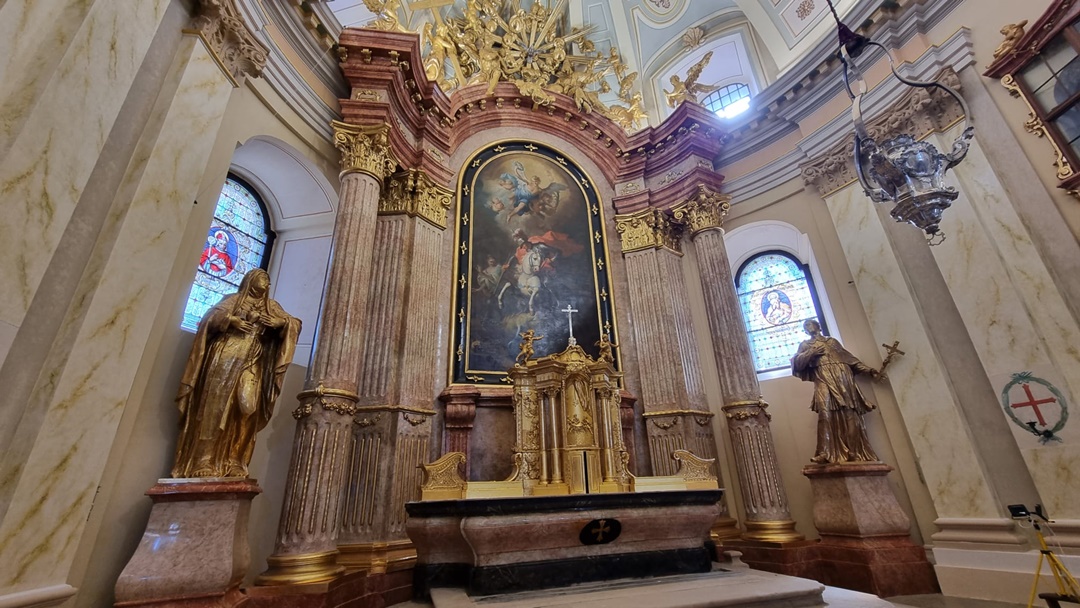 Darida a povestit si care au fost inceputurile Domului catolic din Piata Unirii si s-a referit si la cel mai vechi element care se pastreaza si in ziua de astazi, respectiv un tablou imens care il reprezinta pe Sfantul Gheorghe in timp ce se lupta cu balaurul.