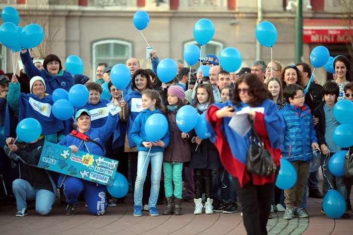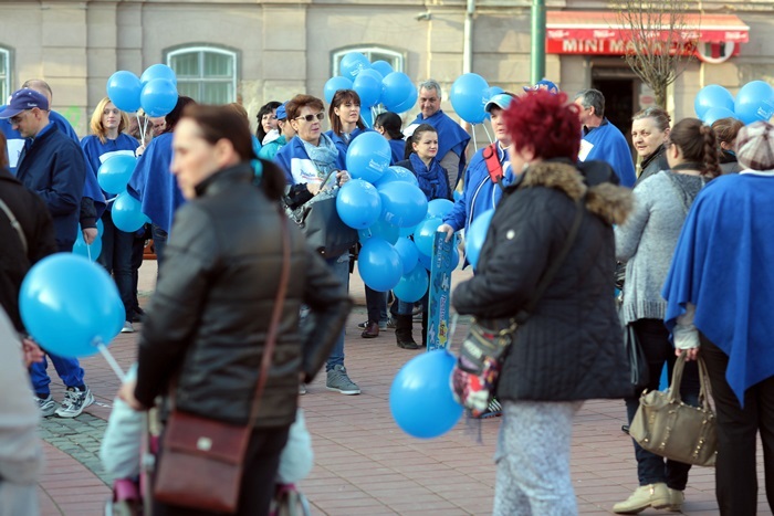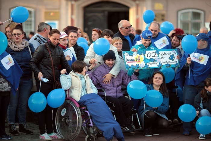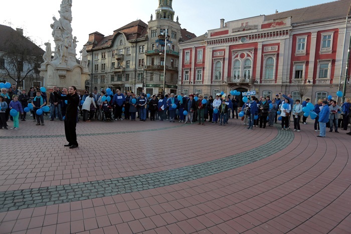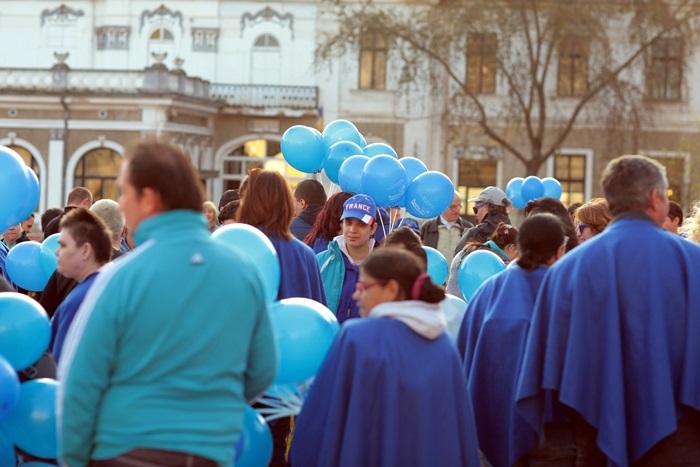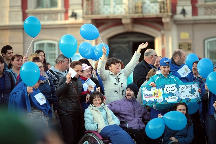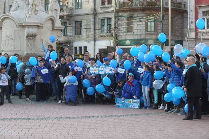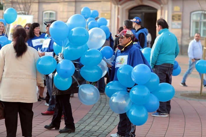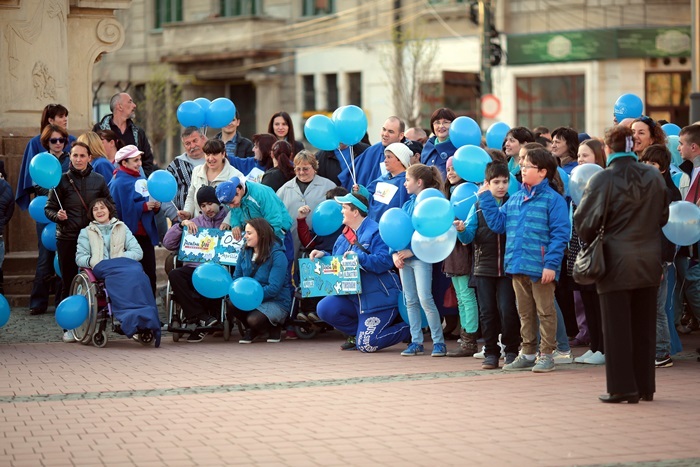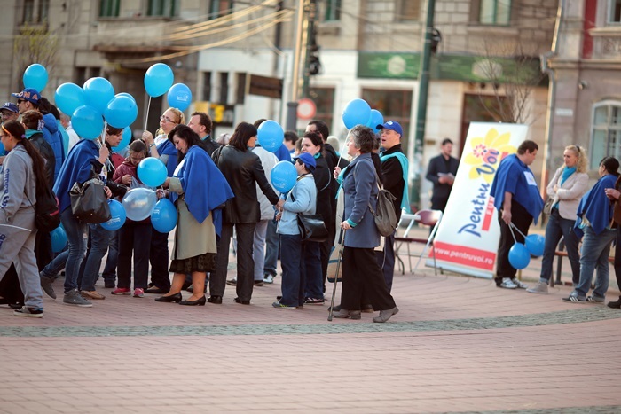 Totodata, sute de baloane au fost impartite de voluntarii Fundatiei ‘Pentru Voi’, dar si de beneficiarii serviciilor lor, de prieteni si simpatizanti care lupta pentru aceeasi cauza.