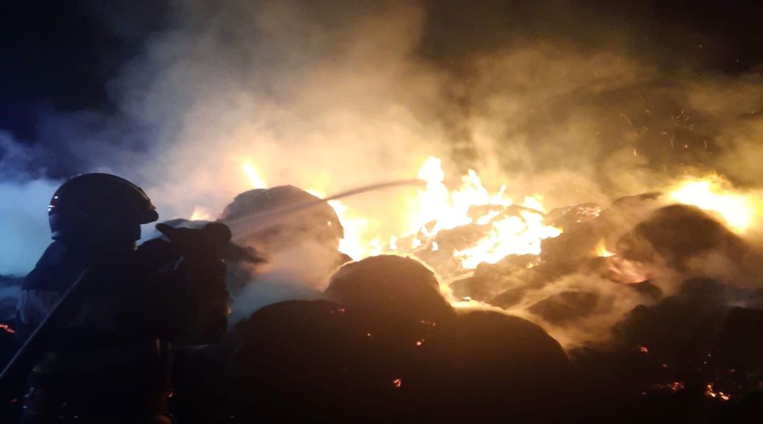 Un incendiu puternic a izbucnit noaptea trecută în Arad. Sute de baloți de paie au fost cuprinși de flăcări.