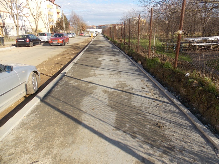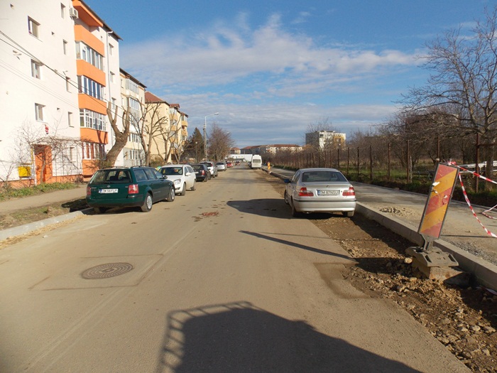 Strada a fost largita pe ambele parti pentru a crea noi locuri de parcare si a permite si circulatia masinilor, iar unul din trotuare a fost refacut. Asfaltarea nu s-a incheiat nici aici, santierul fiind inchis pana la primavara.