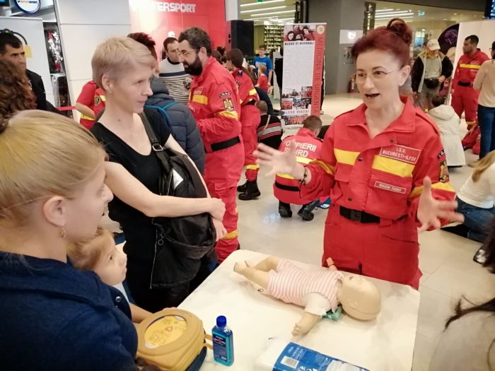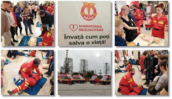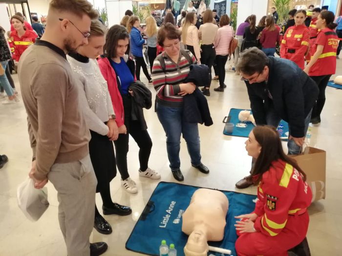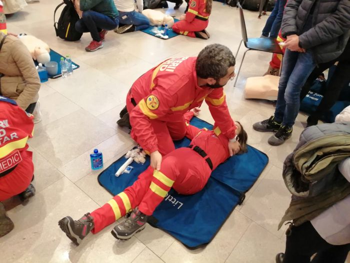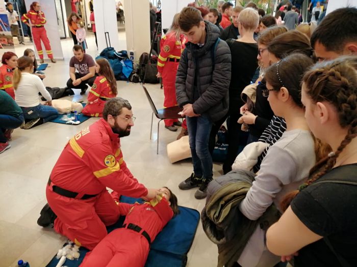 50 de medici, paramedici, instructori formatori si voluntari au adus 30 de manechine de resuscitare, si, timp de 9 ore, au prezentat cum se procedeaza corect pentru a acorda primul ajutor, in cadrul Maratonului Resuscitarii.