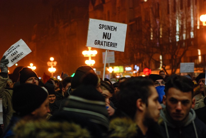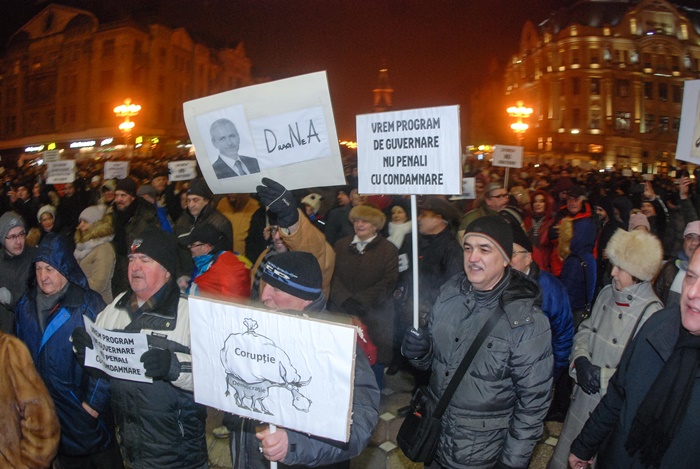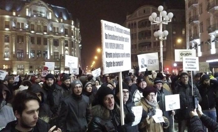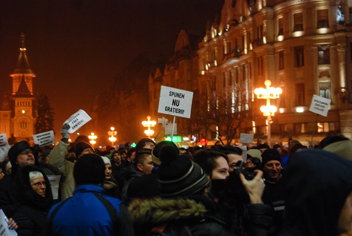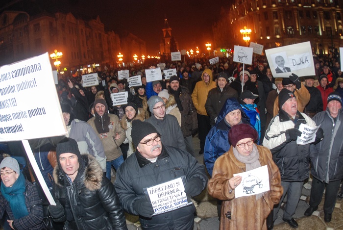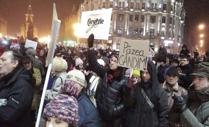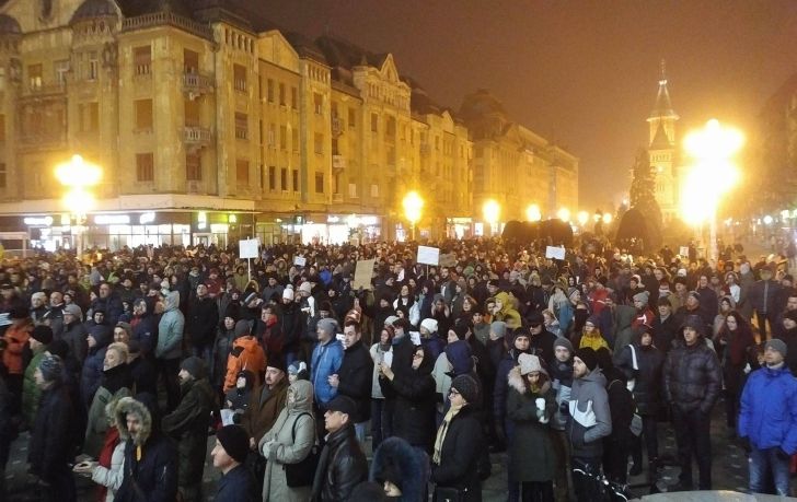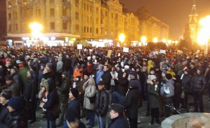 TIMISOARA. Mii de timisoreni au iesit in Piata Victoriei si intr-o noua zi de proteste fata de modificarile privind amnistia si gratierea, pe care vrea sa le faca Guvernul si care ar salva o multime de politicieni, functionari sau oameni de afaceri condamnati, aflati in procese ori in anchete.