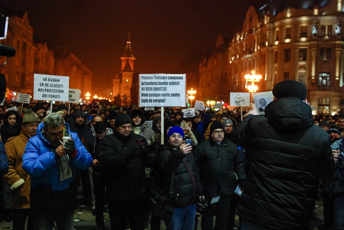 Va reamintim, joia trecuta, peste 1000 de oameni au fost in centrul Timisoarei, alaturandu-se romanilor din alte orase care au decis sa protesteze fata de aceste proiecte pentru ca, spun ei, in acest fel, Liviu Dragnea, Calin Popescu Tariceanu sau Gabriel Oprea s-ar numara printre beneficiarii acestor modificari ale legii.