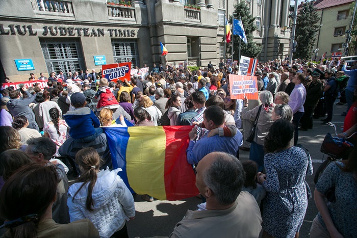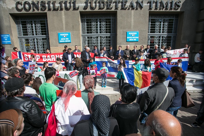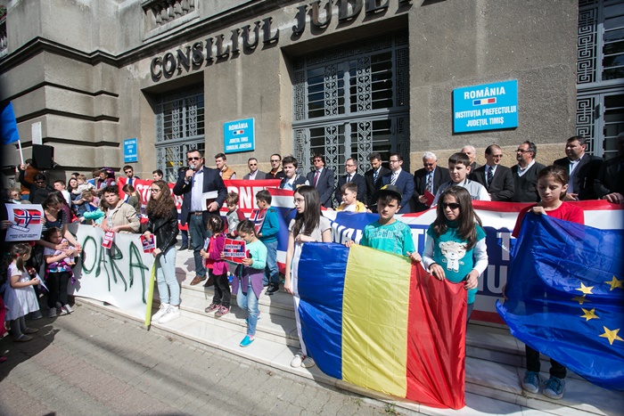 TIMISOARA. S-a iesit in strada, din nou, pentru sustinerea familiei Bodnariu, din Norvegia, ai carei copiii au fost luati in grija statului. La Timisoara, cateva sute de persoane au iesit in fata Prefecturii cu pancarde si si-au spus nemultumirile.