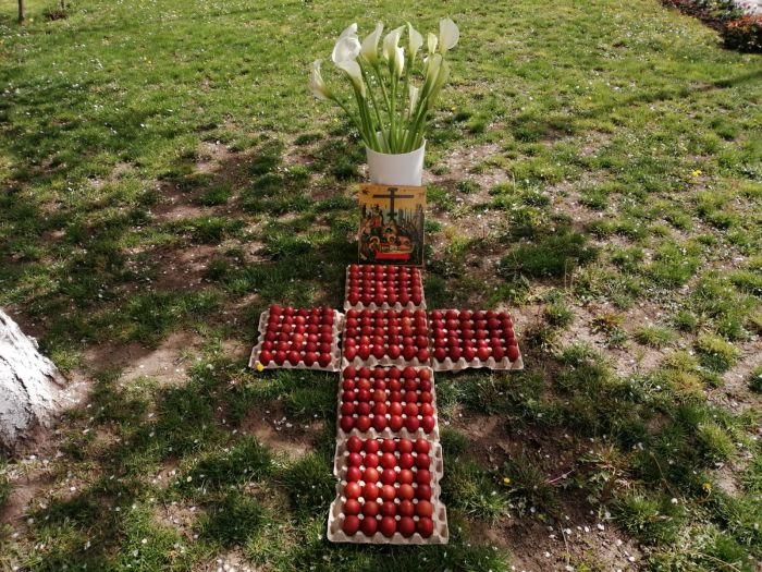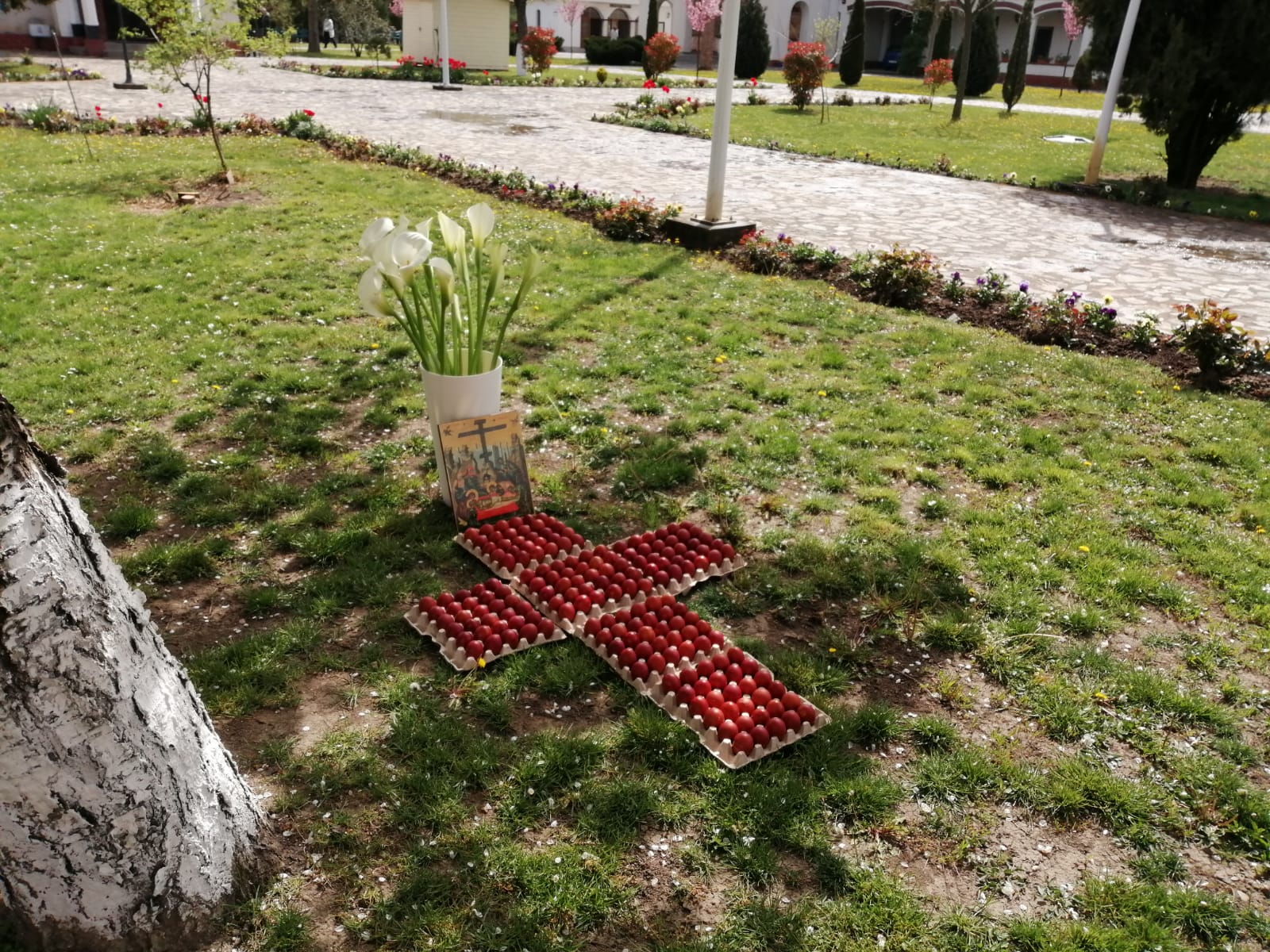 Potrivit obiceiului din partea locului, maicutele au asezat apoi ouale in forma de cruce, pentru sfintire, in iarba din curtea manastirii. Maicile sunt incredintate ca asta le va aduce pace si bunastare.