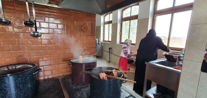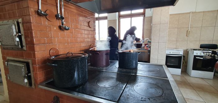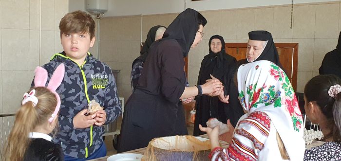 Micuta lor bucatarie devine neincapatoare, pentru ca niciuna nu sta deoparte, iar in ajutorul lor vin, ca de obicei, si copiii satului. In cateva ore, maicutele au vopsit peste aproximativ 800 de oua.