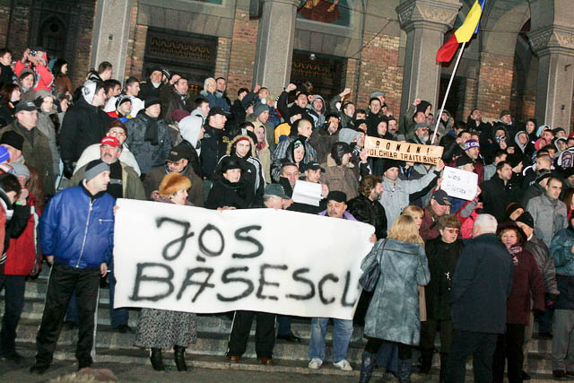 In tot acest timp au fost rostite discursuri si au fost scandate lozinci impotriva presedintelui Traian Basescu si a actualului Guvern condus de Emil Boc. Protestatarii au purtat cu ei pancarte si steaguri tricolore.