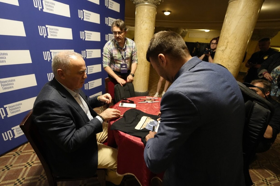 La Teatrul Național Timișoara, legendarul șahist a avut o întâlnire cu reprezentanții presei, cărora le-a prezentat viziunea proprie despre problemele geopolitice actuale.