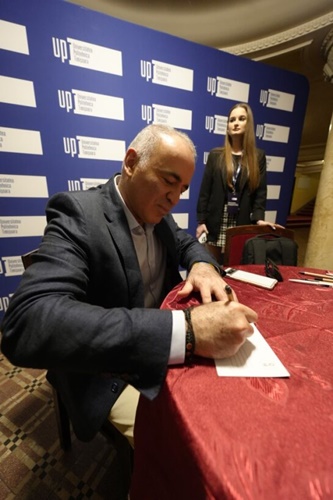 Încă de la sosirea pe Aeroportul Internațional Timișoara, unde a fost așteptat de o echipă a conducerii Universității Politehnica Timișoara, Garry Kasparov a declarat: „Vă mulţumesc pentru o primire-surpriză în oraşul de naştere al Revoluţiei Române. Astăzi, când lumea se confruntă din nou cu o ameninţare existenţială provenită din rămăşiţele trecutului comunist, sunt cu adevărat entuziasmat să vizitez locul care prin importanţa sa istorică ne-a oferit încrederea în viitorul luminos democratic”.