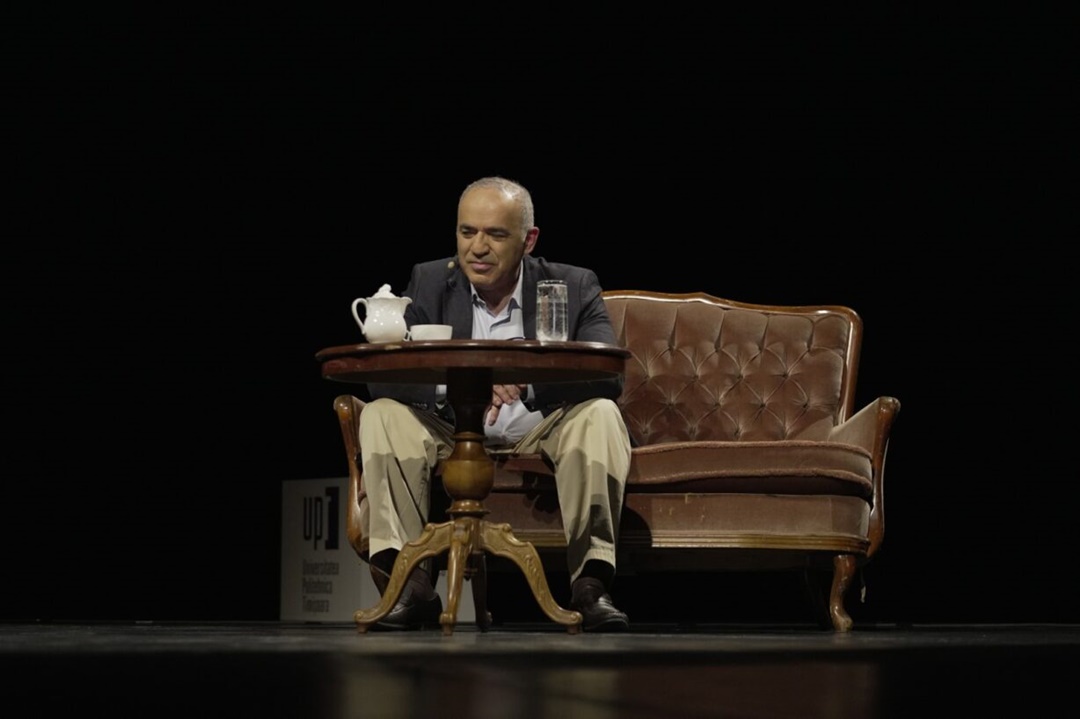În fața publicului timișorean, care l-a primit cu aplauze la scenă deschisă, Garry Kasparov a vorbit despre copilăria petrecută într-un mic apartament din orașul Baku, pe atunci în Uniunea Sovietică, despre originile sale evreiești și armene, despre părinții ingineri, despre restricțiile regimului comunist și despre revoltele de mai târziu împotriva noii dictaturi instalate. A declarat că preferă termenul de libertate în loc de democrație, pe care o apreciază doar ca un concept global și s-a arătat deosebit de precupat de lipsa de speranță și de perspectivă pe care o vede în ochii multor oameni. Din dialog nu puteau lipsi celebrele partide de șah disputate cu Karpov, cu calculatorul Deep Blue sau cucerirea titlului mondial, la doar 22 de ani, dar nici preocupările sale actuale legate de impactul progreselor fulminante din domeniul inteligenței artificiale asupra vieții și libertăților fundamentale ale omului, care vor fi dezvoltate mai pe larg în cadrul Tech Talks by UPT.