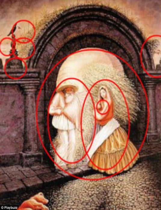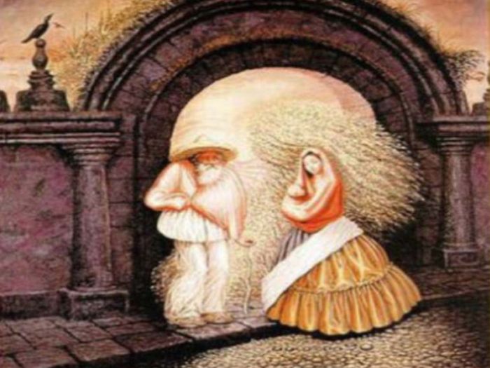 La prima vedere, in imagine apare chipul unui batran, insa, in realitate, in tablou sunt ascunse mult mai multe chipuri.