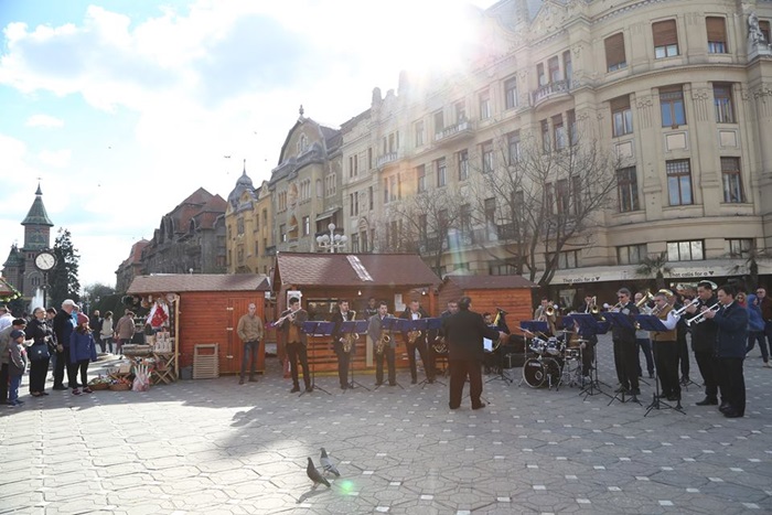 TIMISOARA. Piata Victoriei a prins viata, odata cu deschiderea Targului de Paste de anu acesta, care si-a deschis, oficial, portile. Targul a fost inaugurat duminica dupa amiaza, cu un concert al formatiei Timisoara Big Band.