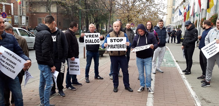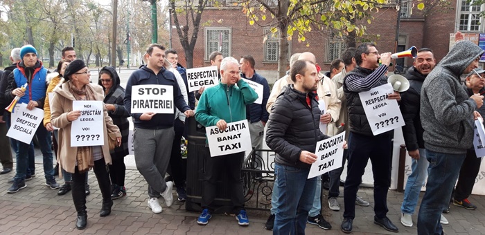 TIMISOARA. Soferii de taxi din oras au strigat adunarea la proteste, in fata unor institutii publice din Timisoara.