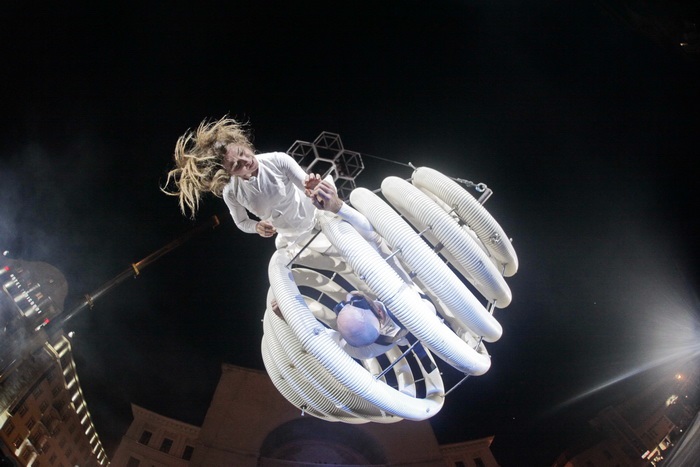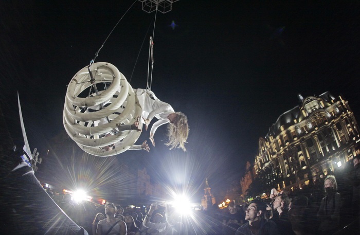 Actorii vor zbura, la propriu! In centrul orasului a fost deja instalata o macara cu un brat lung de zeci de metri, care ii va ajuta in timpul spectacolului.