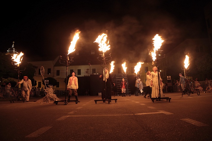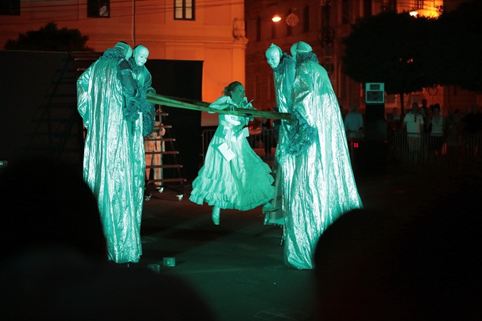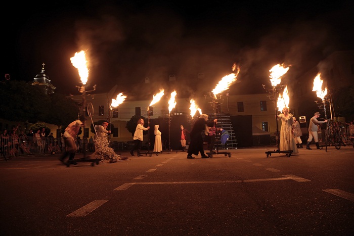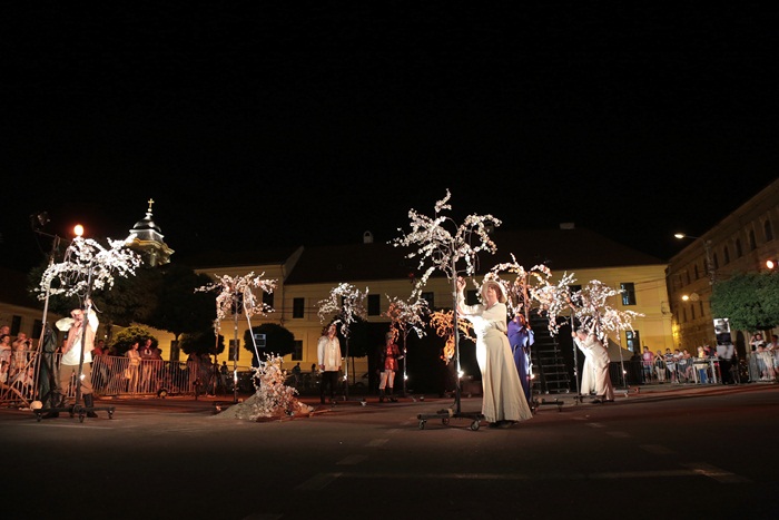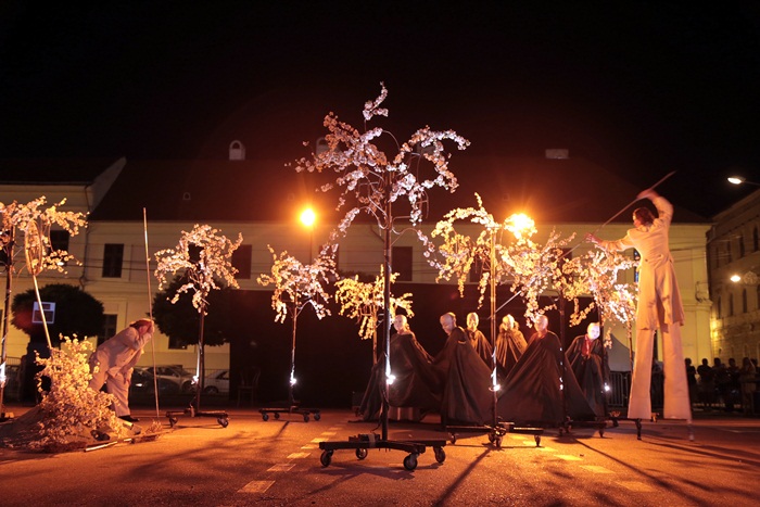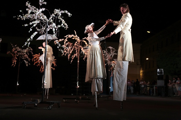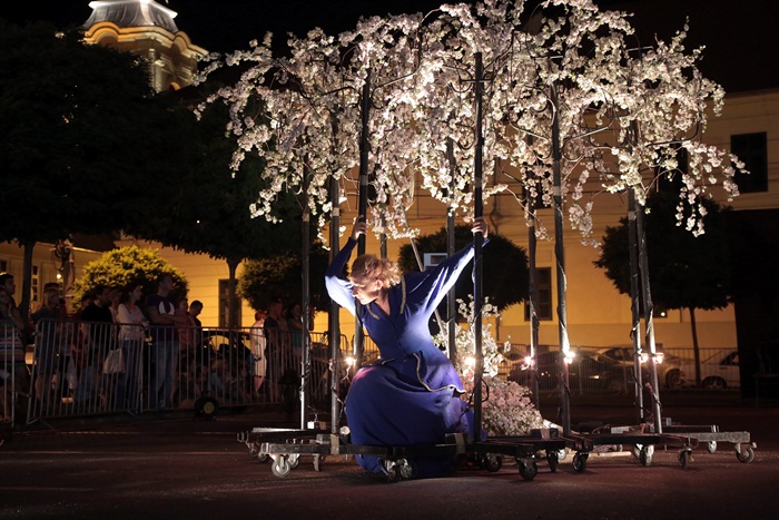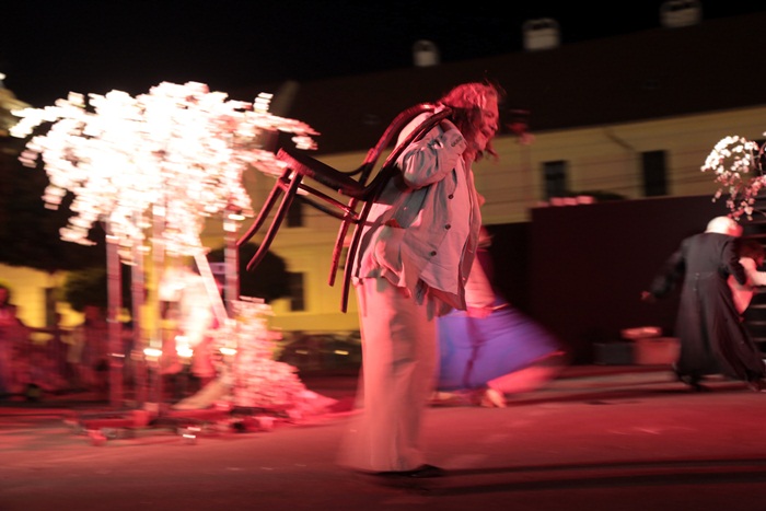 TIMISOARA. Spectacol eveniment la Timisoara duminica seara, unde, intr-o parcare din centrul orasului, s-a jucat Livada de visini. Sute de timisoreni au pornit intr-o calatorie fascinanta si plina de imaginatie prin lumea lui Cehov.