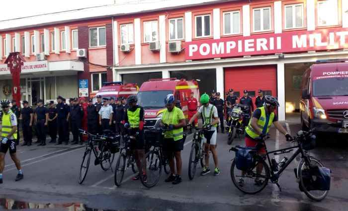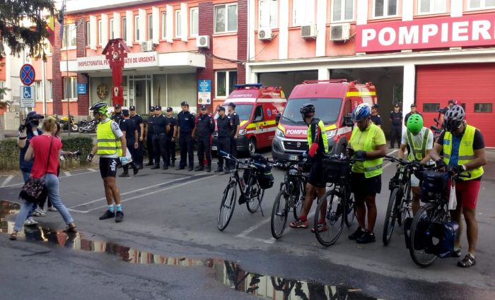 5 biciclisti din Timisoara, intre care si doi pompieri din cadrul Inspectoratului pentru Situatii de Urgenta, au plecat la ora 8.00 din fata sediului ISU Banat.