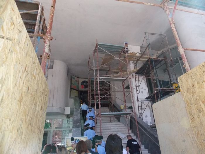 Edilul a urcat in imobil sa vorbeasca cu reprezentantii proprietarilor si ai firmei care amenajeaza terasa pe schelet metalic ce aduce foarte mult cu fostul Acvariu din Piata Operei, dupa cum sustine primarul.