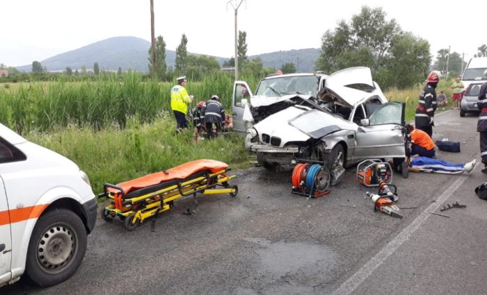 UPDATE: Soferul BMW-ului, care a si fost resuscitat de paramedici la locul tragediei, nu a mai rezistat. Barbatul a murit in bratele doctorilor de pe elicopterul SMURD care se straduiau din rasputeri sa ii salveze viata.