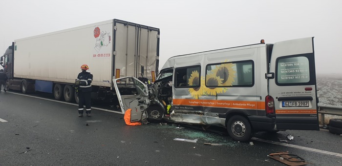 In tir se afla doar soferul, in masina erau 2 oameni, iar in microbuz 7. Sase dintre acestia din urma au ramas incarcerati in microbuzul zdrobit. Pompierii au muncit mai bine de o ora pentru a-i recupera pe raniti.
