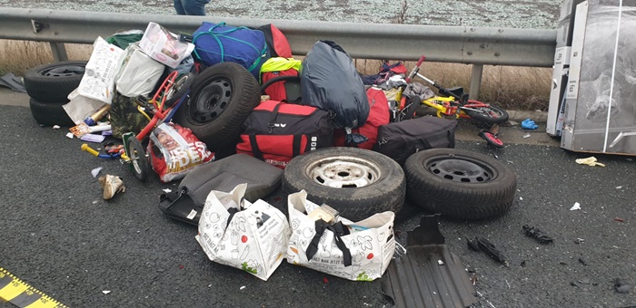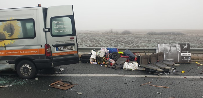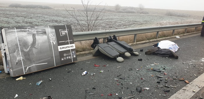 UPDATE : Pasagerii din microbuzul cu numere de Germania veneau de la munca din strainatate. Adusesera cu ei cadouri pentru familii. Televizoare, biciclete si pungi cu dulciuri si cosmetice s-au imprastiat pe sosea.