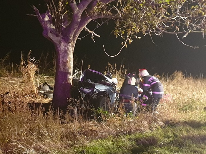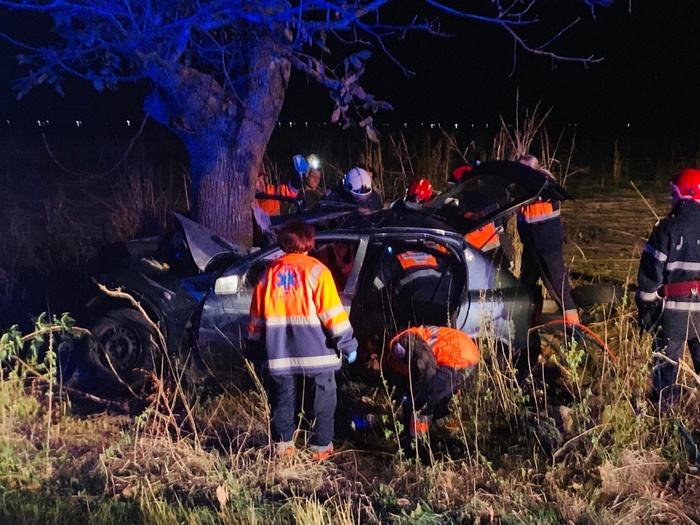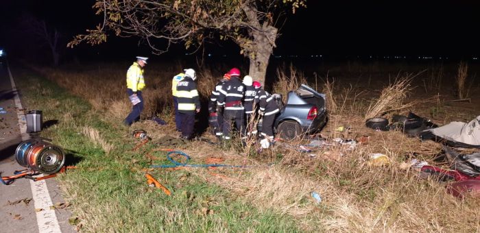 TIMISOARA. Grav accident de circulatie, sambata seara, pe soseaua ce leaga Timisoara de Sannicolau Mare. 2 oameni au murit, iar unul a fost grav ranit dupa ce masina in care se aflau s-a izbit violent de un copac.
